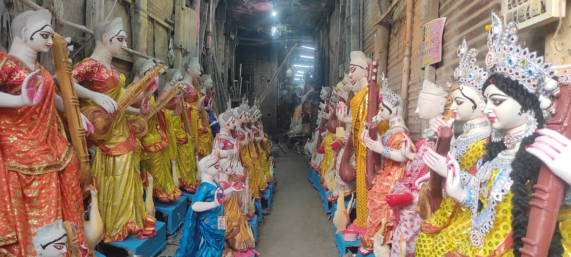 রিপোর্টার, সমরেশ রায় ও শম্পা দাস , কলকাতা, পশ্চিমবঙ্গ ২৮ শে জানুয়ারী মঙ্গলবার, কুমারটুলিতে মৃৎশিল্পীদের ব্যস্ততার চোখে পড়ার মতো সরস্বতী প্রতিমার তাই শেষ করার জন্য, অন্যদিকে বাড়ির পুজো থেকে শুরু করে, ক্লাবের পূজা উদ্যোক্তারা ভীর জমিয়েছেন কুমারটুলিতে, এমনটাই ক্যামেরায় ধরা পরলো। কোথাও চলছে প্রতিমা কাজ শেষ করার তোরজোর, আবার কোথাও এখনো প্রতিমায় মাটি দেওয়া চলছে।