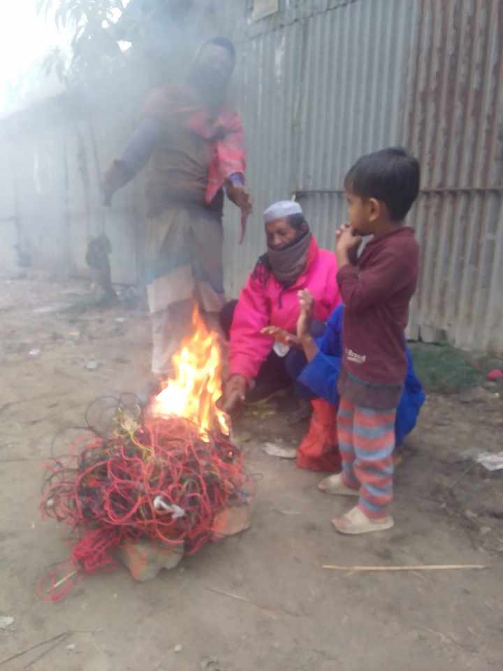 সিরাজগঞ্জ সলঙ্গায় শীতে জবুথবু। রাস্তার পাশে খড়কুটো দিয়ে আগুন জ্বালিয়ে শীত নিবারণের চেষ্টা করছে আমশড়ার মানুষ