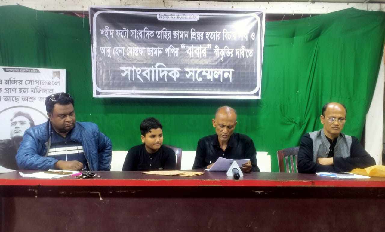 শহীদ ফটো সাংবাদিক তাহির জামান প্রিয়’র হত্যার বিচার ও তার পিতা আবু হেনা মোস্তফা জামান পপির ‘বাবার’ স্বীকৃতির দাবিতে রংপুরে সাংবাদিক সম্মেলন করেন।