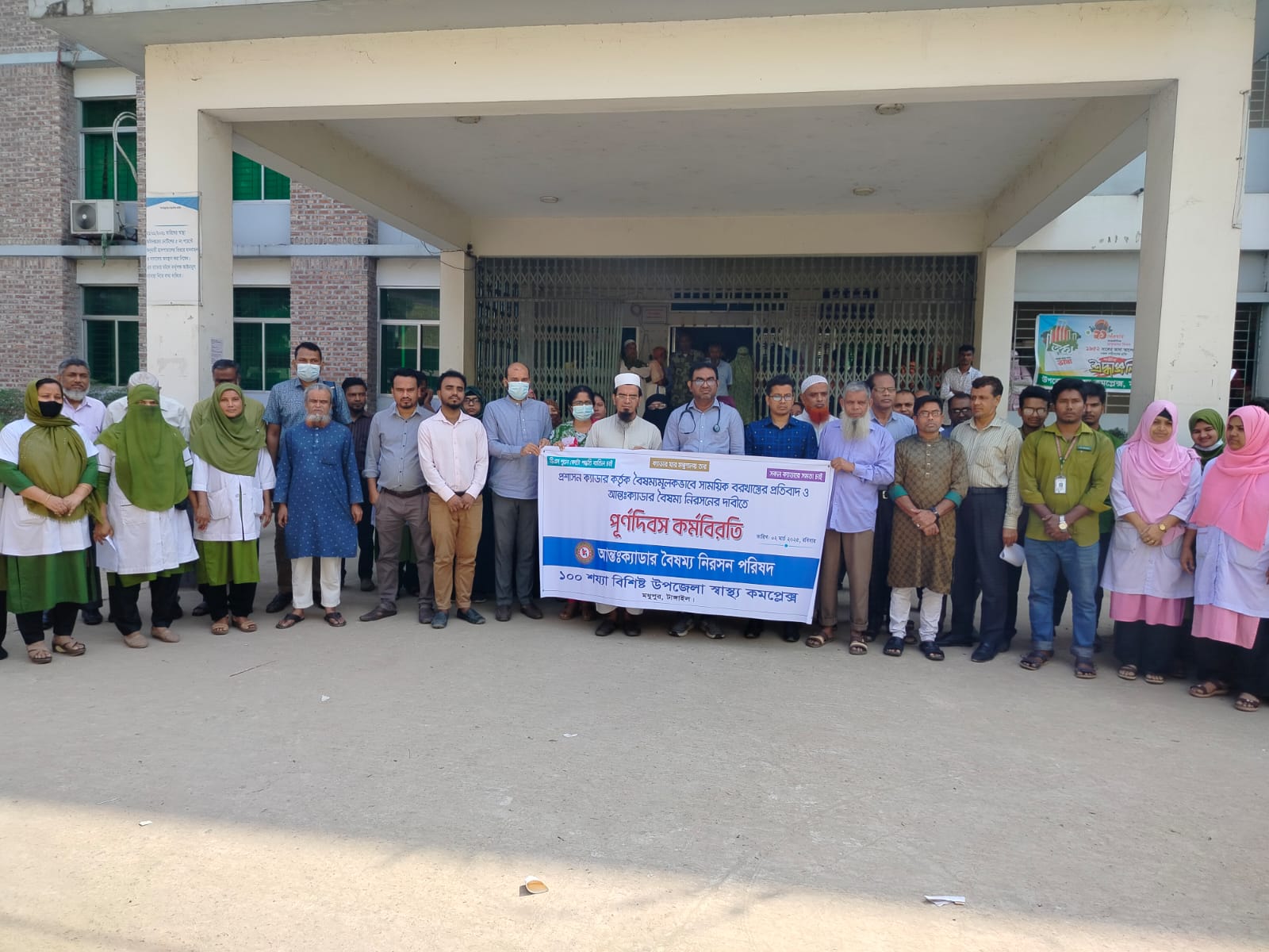 প্রশাসন ক্যাডার কর্তৃক বৈষম্যমুলক ভাবে সাময়িক বরখাস্তের প্রতিবাদ ও আন্তঃক্যাডার বৈষম্য নিরসনের দাবিতে টাঙ্গাইলের মধুপুরে দিনব্যাপী কর্মবিরতি ও মানববন্ধন করেছে মধুপুর আন্তঃক্যাডার বৈষম্য নিরসন পরিষদ।