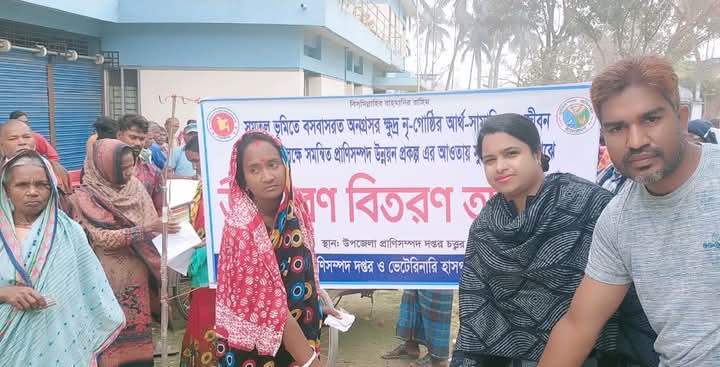জয়পুরহাটের পাঁচবিবি উপজেলার হাজারের অধিক আদিবাসীদের মাঝে উপকরণ বিতরণ করা হয়েছে। শুক্রবার সকালে উপজেলা প্রাণিসম্পদ অধিদপ্তর ও ভেটেরিনারি হাসপাতালের আয়োজনে অফিস চত্বরে আদিবাসীদের মাঝে উপকরণ বিতরণের উদ্বোধন করেন নবাগত উপজেলা নির্বাহী কর্মকর্তা রোমানা রিয়াজ। এসময় উপস্থিত ছিলেন উপজেলা প্রাণিসম্পদ কর্মকর্তা ডাঃ মোঃ হাসান আলী ও উপজেলার সুফলভোগী আদিবাসীরা। প্রাণিসম্পদ কর্মকর্তা ডাঃ হাসান আলী বলেন, সমতল ভূমিতে বসবাসরত অনগ্রসর ক্ষুদ্র নৃ-গোষ্ঠীর আর্থ -সামাজিক ও জীবন মানোন্নয়নের লক্ষ্যে সমন্বিত প্রাণিসম্পদ উন্নয়ন প্রকল্পের আওতায় এবছর ৩৮৪’টি সুফলভোগী পরিবারের প্রত্যেকের মাঝে ৫৯ কেজি মুরগীর খাবার প্রদান করা হচ্ছে। তিনি আরো বলেন, ইতিপূর্বে উপজেলার ৬৬৬’টি পরিবারের মাঝে ৫০ কেজি মুরগির খাবার দেওয়া হয়েছে।