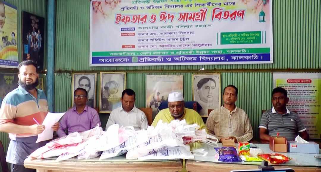 ঝালকাঠিতে প্রতিবন্ধী ও অটিজম বিদ্যালয়ের শিক্ষার্থীদের মাঝে নতুন পোষাক ঈদসা মগ্রী বিতরণ