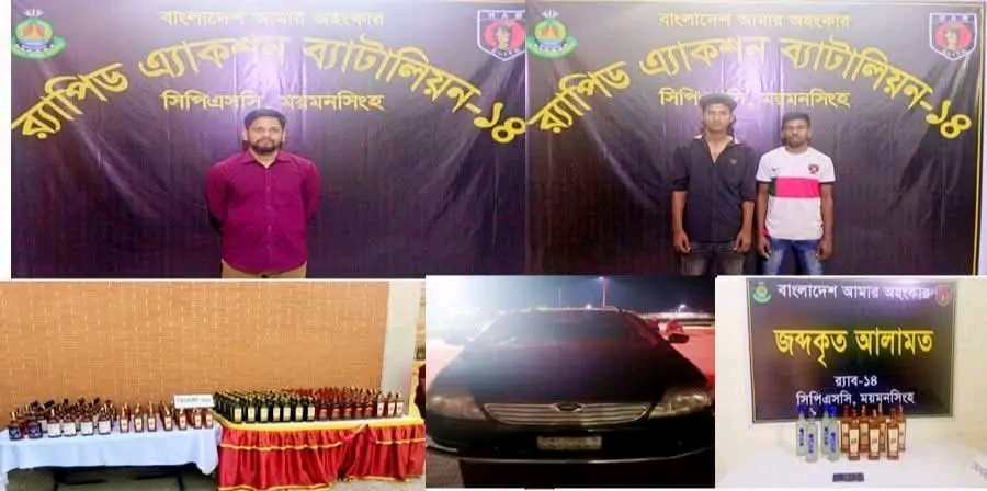 ময়মনসিংহ র্যাব- ১৪ এর ২ অভিযানে বিপুল পরিমাণ বিদেশি মদ সহ গ্রেফতার ৩।