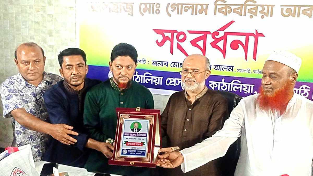 ঝালকাঠির কাঠালিয়া প্রেসক্লাবের উদ্যোগে অবসরপ্রাপ্ত সিনিয়র জেলা ও দায়রা জজ মোঃ গোলাম কিবরিয়া আকনকে সংবর্ধনা দিয়েছেন কাঠালিয়া প্রেসক্লাব।