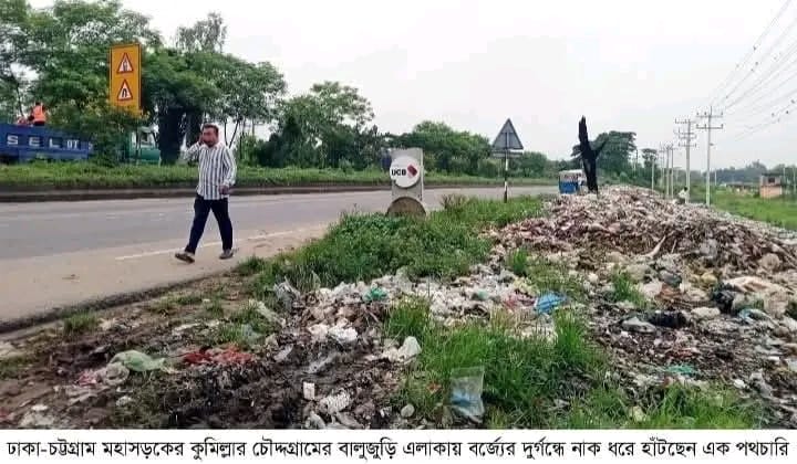 মহাসড়কের চৌদ্দগ্রাম অংশ সরেজমিন ঘুরে দেখা গেছে, চৌদ্দগ্রামের বালুজুড়ি ও মিয়াবাজারে মহাসড়কের ভিাইডার ও দুই পাশে কাঁচাবাজারের ময়লা-আবর্জনা ও বিভিন্ন ধরনের বর্জ্য ফেলার কারণে স্তূপ তৈরি হয়েছে। এসব স্তূপে প্রতিনিয়ত মহাসড়কের দুই পাশে ব্যাঙের ছাতার মতো গড়ে ওঠা অধিকাংশ হোটেল রেস্তোরাঁসহ বিভিন্ন ব্যবসা প্রতিষ্ঠানের বর্জ্য, পঁচা শাক-সবজি, হাঁস-মুরগির বিষ্ঠাসহ নানা ধরনের বর্জ্য ফেলা হচ্ছে। আবার কোথাও রাস্তার পিচের ওপর আবর্জনা ফেলা হচ্ছে। এসব ময়লার ভাগাড়ে পশু-পাখি ও কুকুর-বিড়াল খাবারের উচ্ছিষ্ট ভক্ষণ করার সময় এলোমেলো করে মহাসড়কে ছড়িয়ে ফেলছে। সড়কের ওপরের এসব ময়লা-আবর্জনা যানবাহনের চাকায় পিষ্ট হয়ে দুর্গন্ধ ছড়াচ্ছে এবং এসব ময়লা ধুলায় পরিণত হয়ে বাতাসে উড়ছে। বিশেষ করে বাতাসে ময়লা-আবর্জনা ও বিষাক্ত ধুলা উড়ে আশপাশের বাড়িঘরসহ শিক্ষাপ্রতিষ্ঠানে পড়ছে। দুর্গন্ধে মহাসড়কে চলাচলকারী হাজার হাজার যানবাহনের চালক, যাত্রী ও পথচারীরা সমস্যায় পড়ছেন। সড়কের পাশের এলাকার বাসিন্দারা অতিষ্ঠ হয়ে উঠেছেন। মহাসড়কের এসব স্থান দিয়ে চলার সময় নাকে রুমাল চেপে চলতে হয়। এক কথায়-মানুষের পরিবেশ ও স্বাস্থ্য অধিকার ঝুঁকির মুখে পড়ছে।
