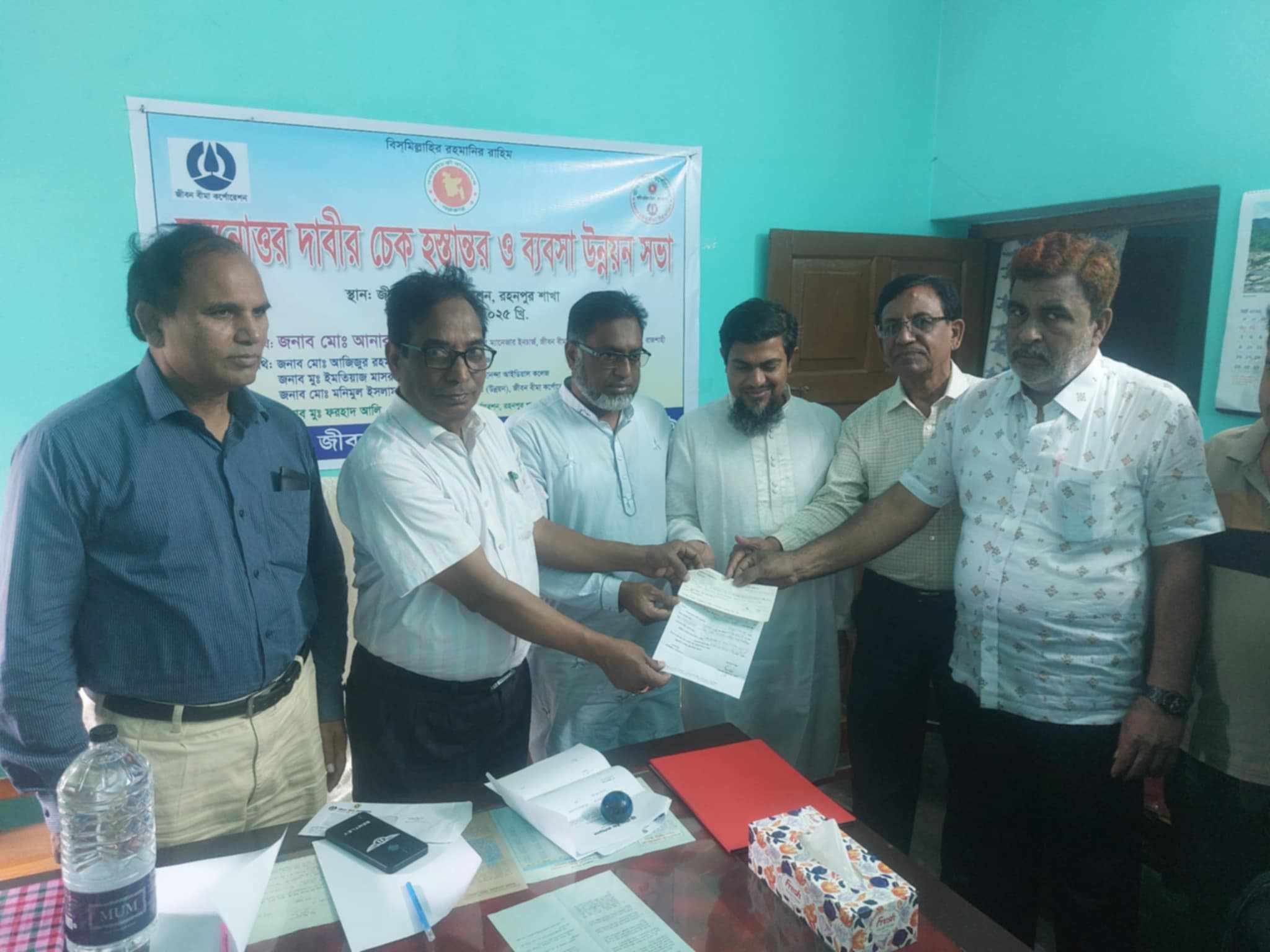 গোমস্তাপুরে মরনোত্তর দাবির চেক বিতরণ