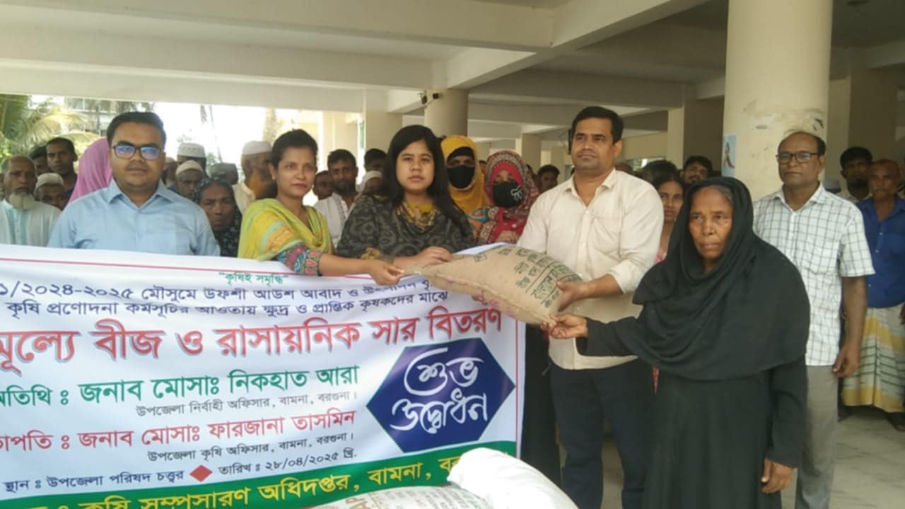 দক্ষিণের জনপদ বরগুনার বামনায় ক্ষুদ্র ও প্রান্তিক কৃষকদের মাঝে বিনামূল্যে বীজ ও রাসায়নিক সার বিতরণ করা হয়েছে। সোমবার (২৮ এপ্রিল) সকাল ১১টায় বামনা উপজেলা পরিষদ চত্বরে এ কার্যক্রমের উদ্বোধন করা হয়। খরিপ/১ ২০২৪-২০২৫ মৌসুমে উফশী আউশ আবাদ ও উৎপাদন বৃদ্ধির লক্ষ্যে কৃষি প্রণোদনার আওতায় এ সহায়তা প্রদান করা হয়েছে।