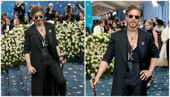 এই বছর মেট গালার থিম ছিল ‘সুপারফাইন টেইলরিং: ব্ল্যাক স্টাইল’, আর সেই থিমের সঙ্গে সাযুজ্য রেখে সব্যসাচীর নিখুঁত নকশায় শাহরুখ পরেছিলেন একটি ক্লাসিক ব্ল্যাক স্যুট, তার উপর একটি লং কোট, হাতে একটি স্টাইলিশ লাঠি, আর গলায় নজরকাড়া স্টেটমেন্ট নেকপিস। তাঁর গলায় থাকা ‘K’ লকেট এবং লাঠিতে থাকা বাঘের মুখের নকশা পুরো লুকটিকে রাজকীয় বৈশিষ্ট্যে পরিণত করে।