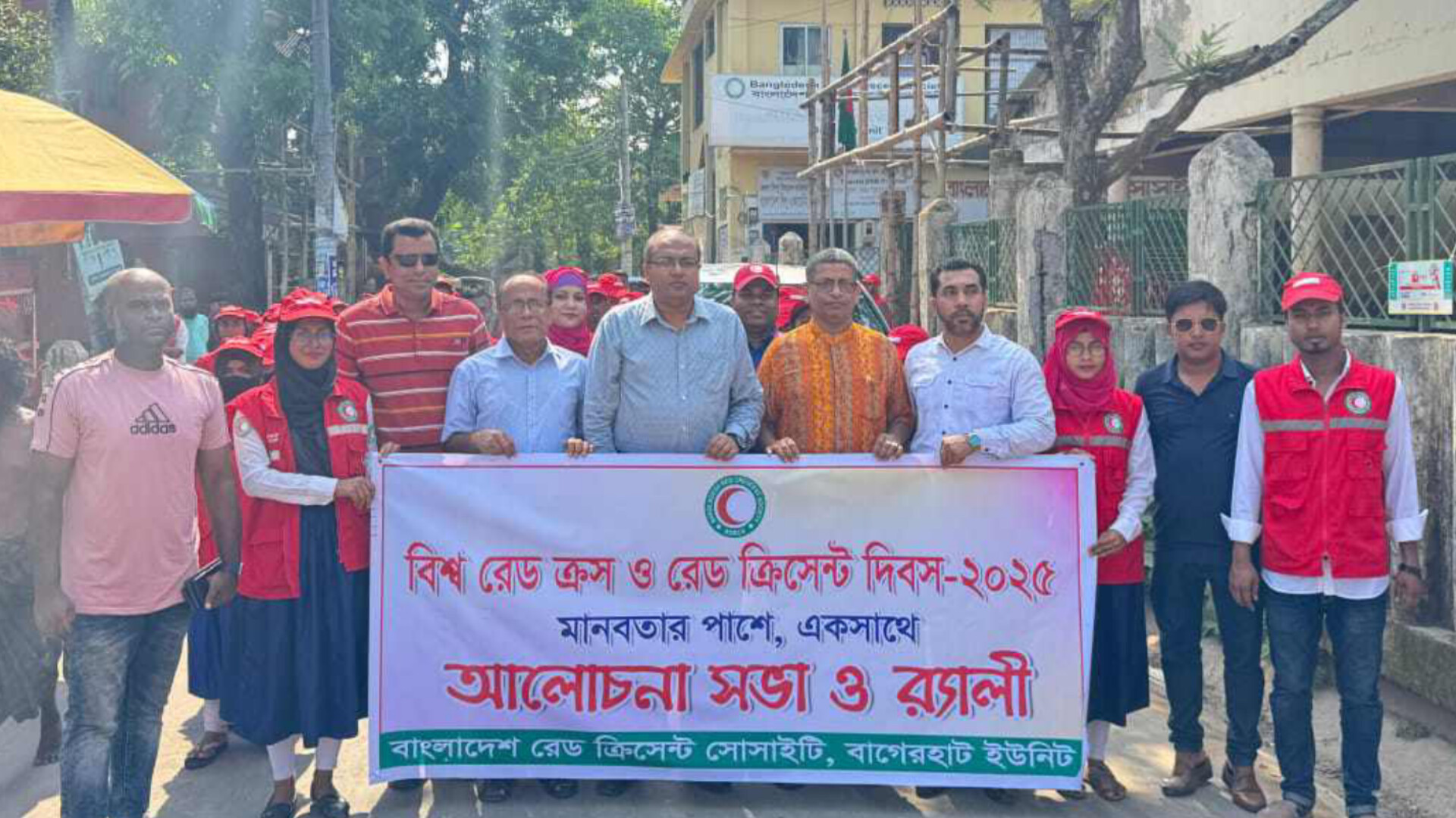 বৃহস্পতিবার (৮ মে ) সকালে বাংলাদেশ রেড ক্রিসেন্ট সোসাইটি বাগেরহাট জেলা ইউনিটির আয়োজনে একটি র্যালি বের হয়ে শহরের প্রধান প্রধান সড়ক প্রদক্ষিন শেষে জেলা অফিসের মিলনায়তনে আলোচনা সভায় মিলিত হয়।