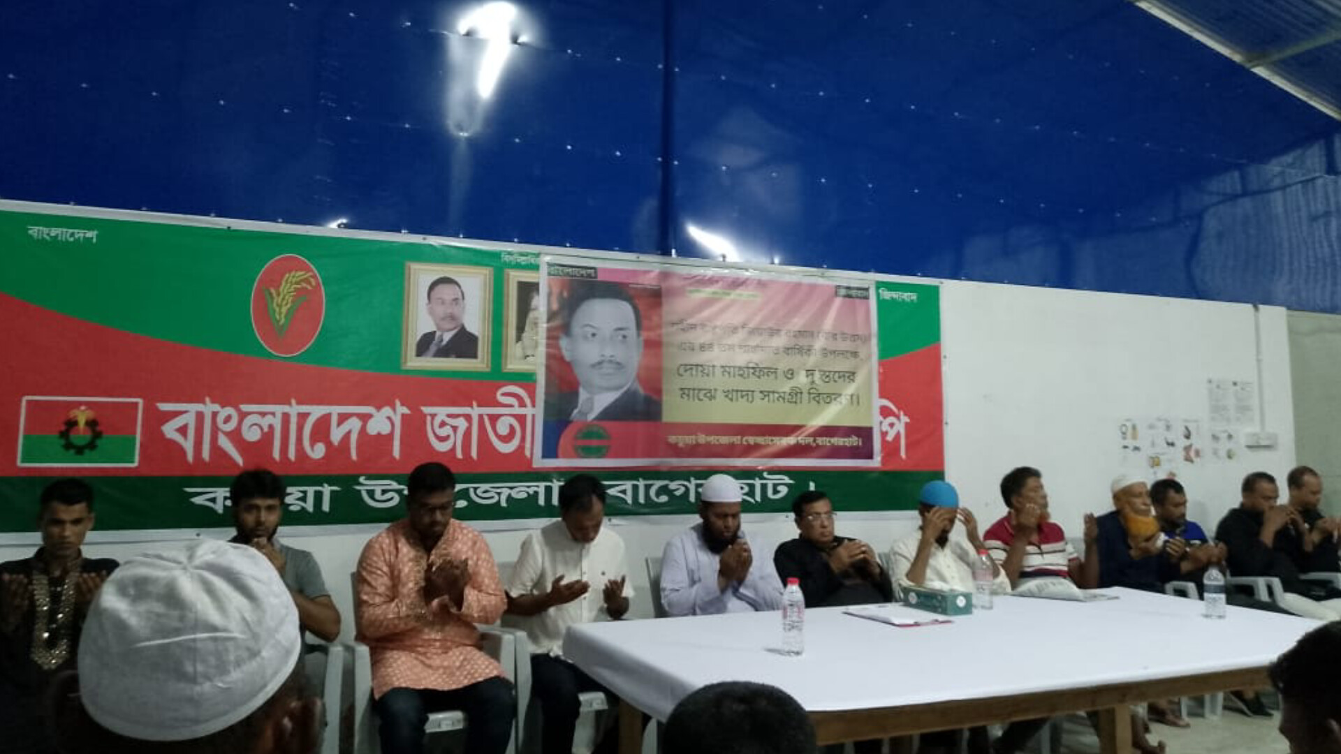 শহীদ রাষ্ট্রপতি জিয়াউর রহমানের ৪৪তম শাহাদাত বার্ষিকী উপলক্ষে বাগেরহাটের কচুয়া উপজেলা স্বেচ্ছাসেবক দলের উদ্যোগে দোয়া মাহফিল ও দুস্থদের মাঝে খাদ্য সামগ্রী বিতরণের আয়োজন করা হয়েছে।