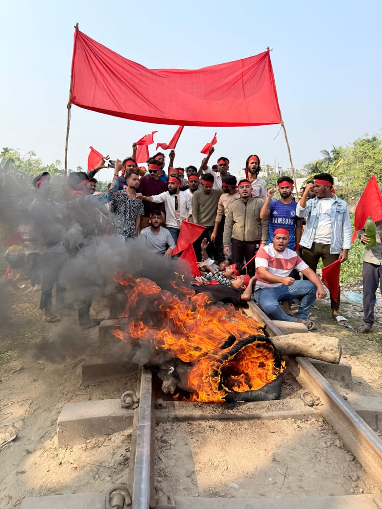 শহর ও সদর উপজেলা ছাত্রদলের কমিটি বাতিলের দাবিতে ট্রেন অবরোধ জামালপুর