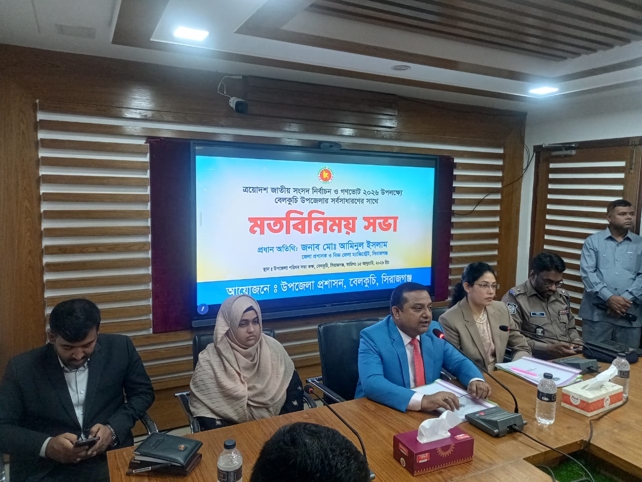 ত্রয়োদশ জাতীয় সংসদ নির্বাচন ও গণভোট উপলক্ষে বেলকুচিতে সিরাজগঞ্জ জেলা প্রশাসকের মতবিনিময়