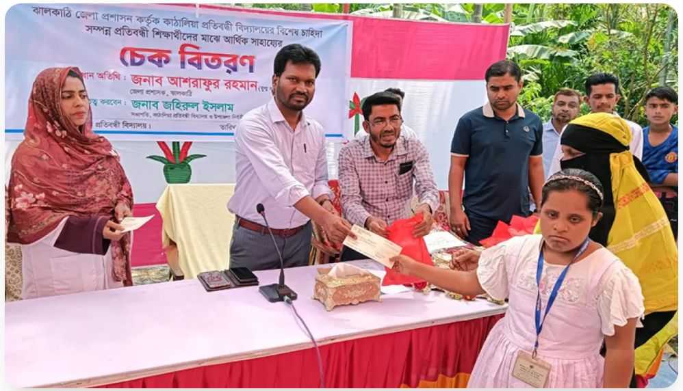 ঝালকাঠির কাঠালিয়ায় প্রতিবন্ধীদের মাঝে জেলা প্রশাসকের আর্থিক সাহায্যের চেক বিতরণ