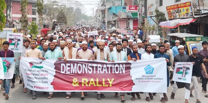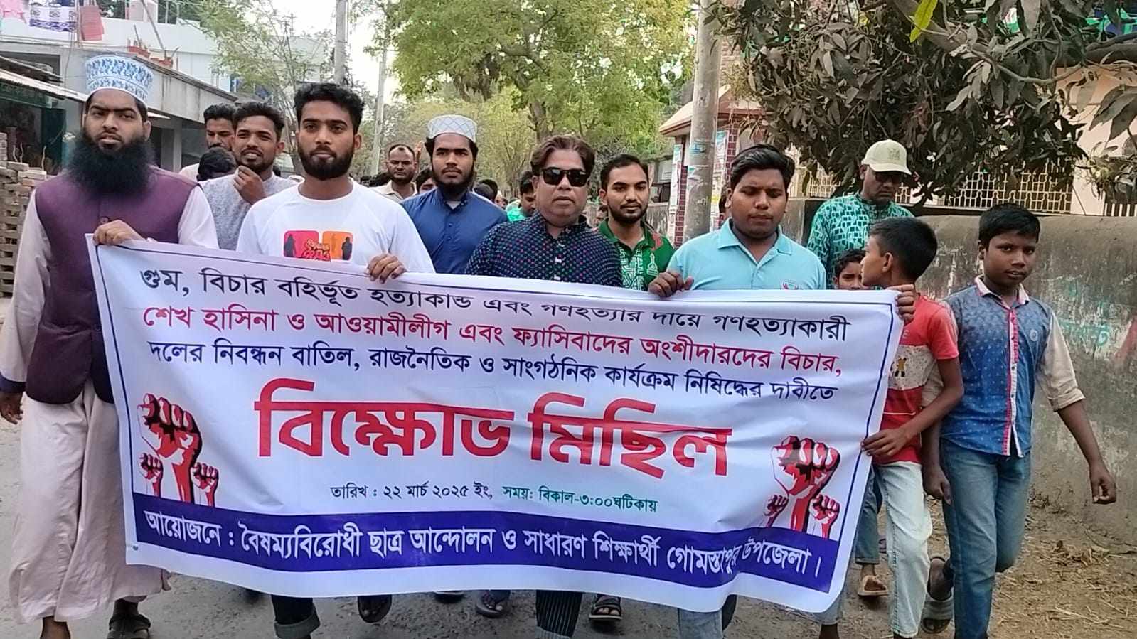 গোমস্তাপুরে আওয়ামী লীগকে নিষিদ্ধের দাবিতে ছাত্র -জনতার বিক্ষোভ মিছিল