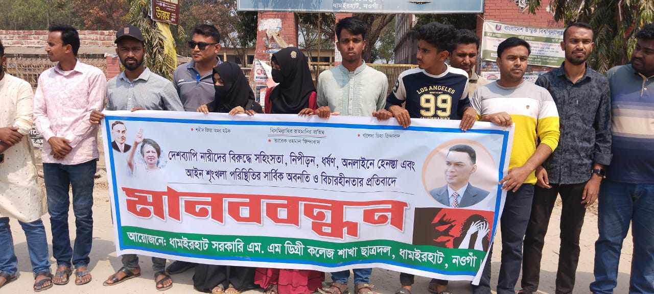 ধামইরহাট সরকারি এম এম ডিগ্রি কলেজ ছাত্রদলের আয়োজনে দেশব্যাপী মানববন্ধন।