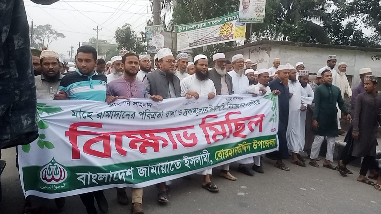 মাহে রমজানের পবিত্রতা রক্ষা ও দ্রব্যমূল্যের ঊর্ধ্বগতি নিয়ন্ত্রণের দাবিতে জামায়াতের বিক্ষোভ।