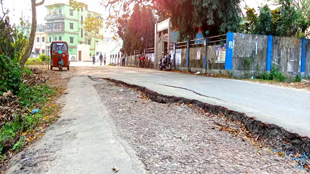 মুন্সিগঞ্জ ভূমি এসিল্যান্ড সংলগ্ন সড়কের অ্যাপ্রোচ ভেঙে চলাচলের মরণফাঁদ।