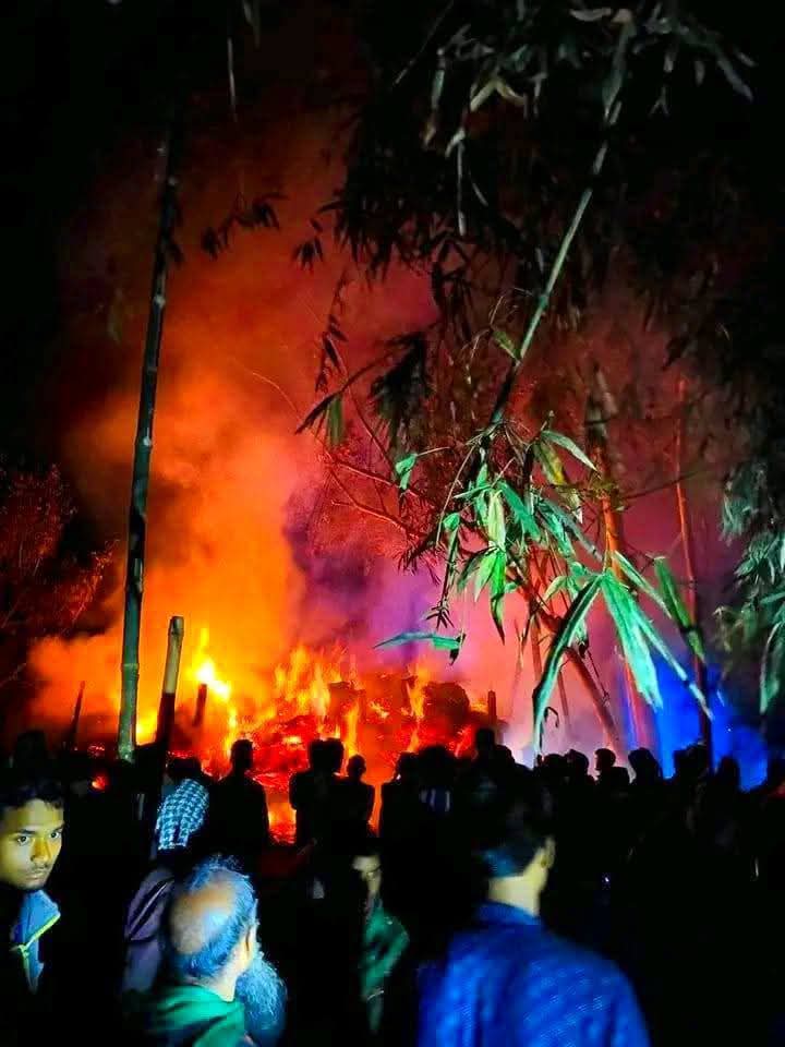 নওগাঁর মান্দা উপজেলায় ভয়াবহ অগ্নিকাণ্ডে ৪টি গরুসহ চার কৃষকের বসতবাড়ি পুড়ে ছাই হয়ে গেছে