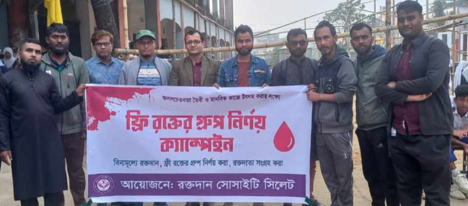 জনসচেতনতা তৈরি ও মানবিক কাজে উদ্বুদ্ধ করার লক্ষ্যে সিলেটে ফ্রি রক্তের গ্রুপ নির্ণয় অনুষ্ঠিত