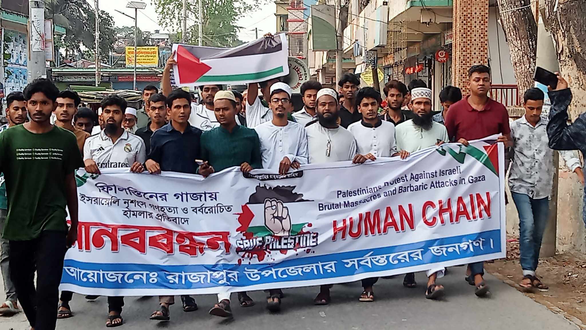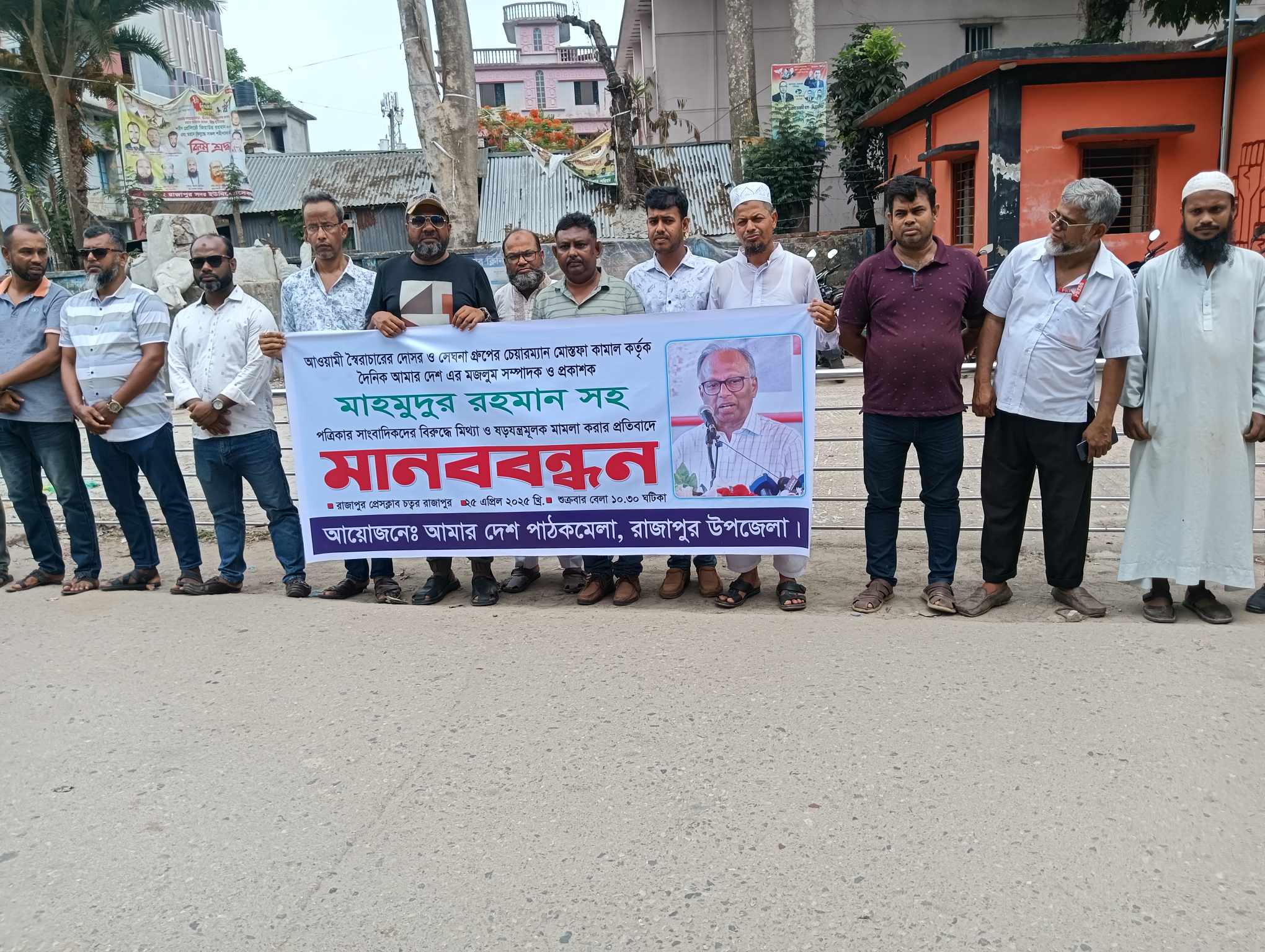 মাহমুদুর রহমানের বিরুদ্ধে মামলার প্রতিবাদে ঝালকাঠির রাজাপুরে মানববন্ধন