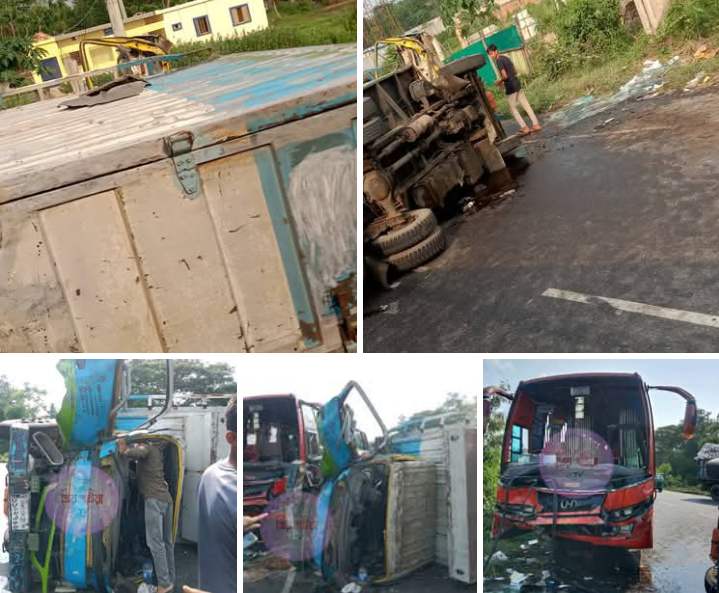 পটিয়ার মনসা বাদামতল মহাসড়কে বাস-কাভার্ড ভ্যান মুখোমুখি সংঘর্ষ, আহত ১