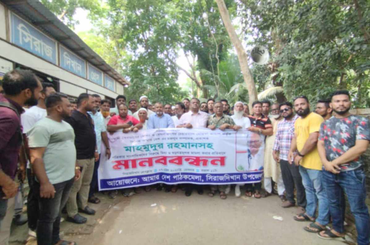 ড. মাহামুদুর রহমান এর বিরুদ্ধে মিথ্যা মামলার প্রতিবাদে মানববন্ধন অনুষ্ঠিত