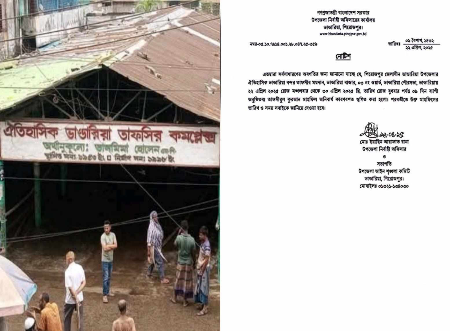 ভান্ডারিয়ায় রাজনৈতিক প্রতিহিংসার কারণে ৬৯ তম তাফসিরুল কোরআন মাহফিল স্থগিত