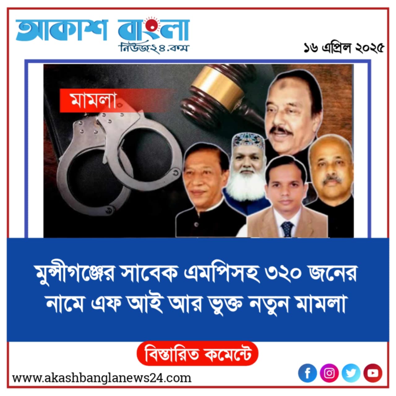 মুন্সিগঞ্জে সাবেক এমপিসহ ৩২০ জনের নামে এফআইআরভুক্ত নতুন মামলা।
