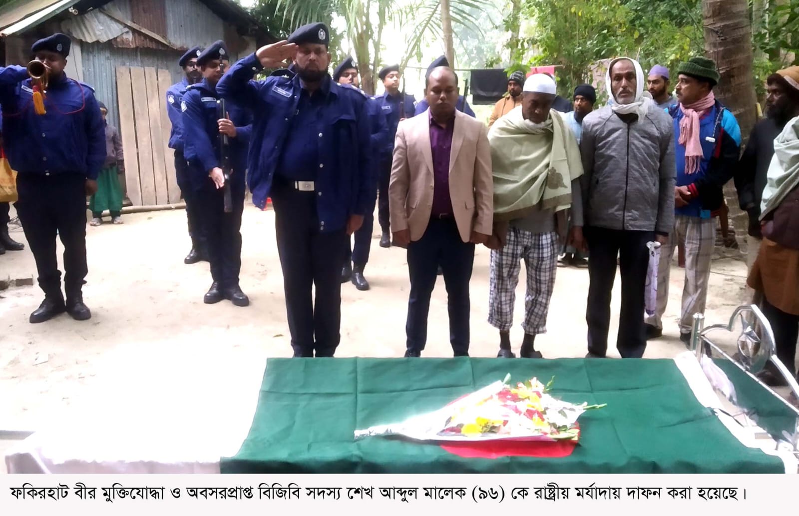 বাগেরহাটের ফকিরহাট বীর মুক্তিযোদ্ধা ও অবসরপ্রাপ্ত বিজিবি সদস্য শেখ আব্দুল মালেক (৯৬) কে রাষ্ট্রীয় মর্যাদায় দাফন করা হয়েছে।