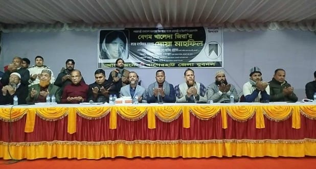 বাগেরহাটে যুবদলের উদ্যোগে বেগম খালেদা জিয়ার রুহের মাগফিরাত কামনায় আলোচনা সভা ও দোয়া অনুষ্ঠিত