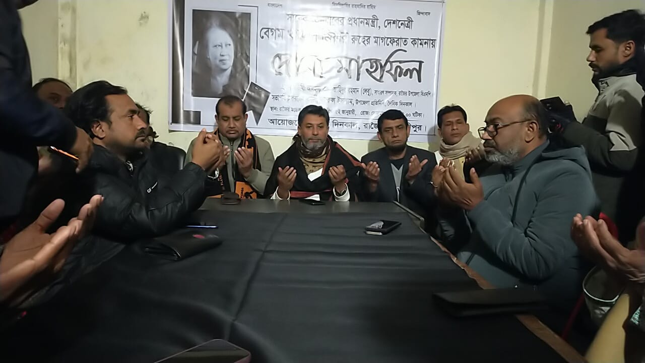 সাবেক তিনবারের প্রধানমন্ত্রী ও বিএনপি চেয়ারপারসন বেগম খালেদা জিয়ার রুহের মাগফিরাত কামনায় মাদারীপুরের রাজৈরে শোক সভা ও দোয়া মাহফিল