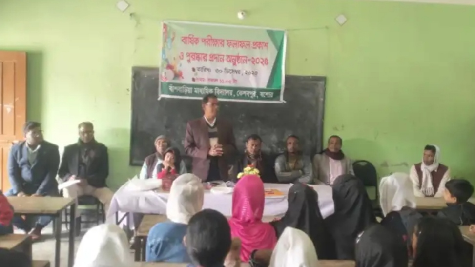 কেশবপুর উপজেলার বাঁশবাড়িয়া মাধ্যমিক বিদ্যালয়ের বার্ষিক পরীক্ষার ফলাফল প্রকাশ ও পুরষ্কার প্রদান অনুষ্ঠান-২০২৫ অনুষ্ঠিত হয়েছে। মঙ্গলবার (৩০ ডিসেম্বর-২৫)