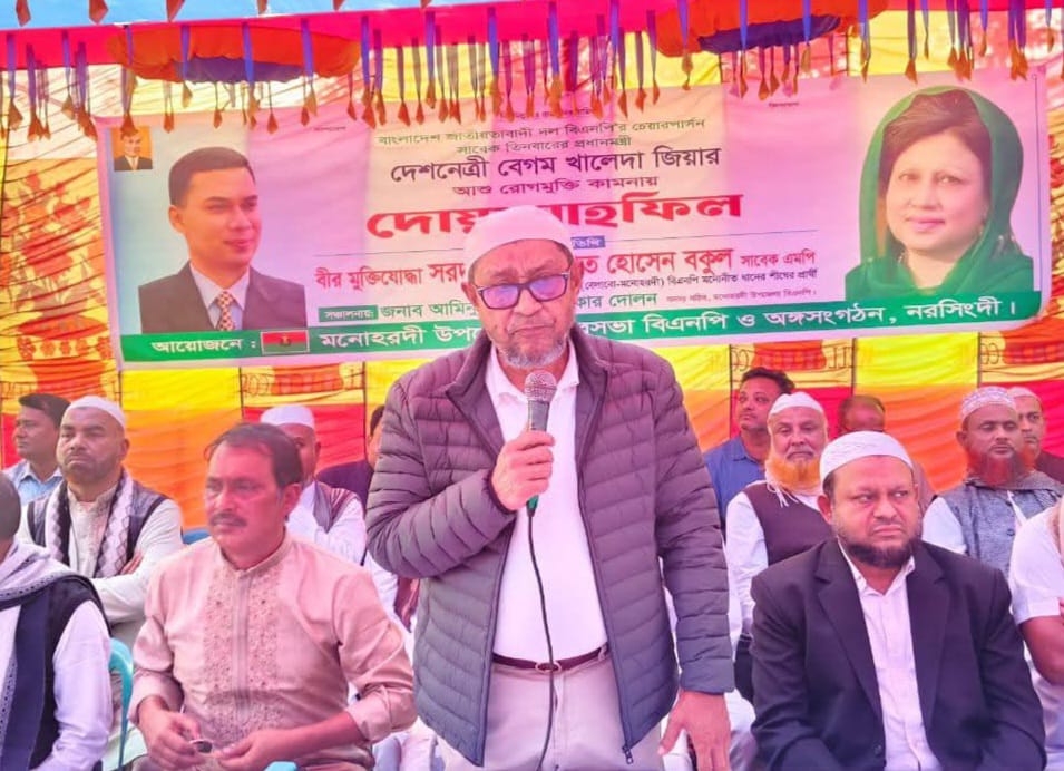 মনোহরদীতে বেগম খালেদা জিয়ার রোগমুক্তি কামনায় দোয়া মাহফিল অনুষ্ঠিত