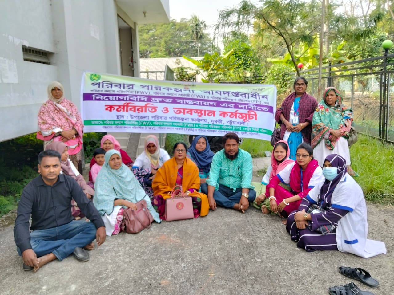 দুমকি উপজেলায়, প্রস্তাবিত বিধিনিয়োগ বাস্তবায়নের দাবীতে পরিবার পরিকল্পনা কর্মীদের কর্মবিরতি ও অবস্থান ধর্মঘট