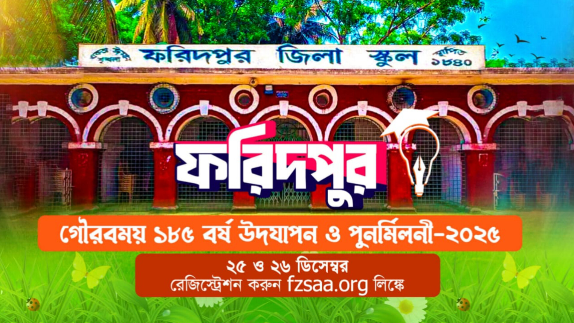 ফরিদপুর জিলা স্কুলের গৌরবময় ১৮৫ বছর পূর্তি ও পুনর্মিলনীর উদ্যোগ নিয়েছে সাবেক শিক্ষার্থীরা। এ উপলক্ষে আগামী ২৫ ও ২৬ ডিসেম্বর