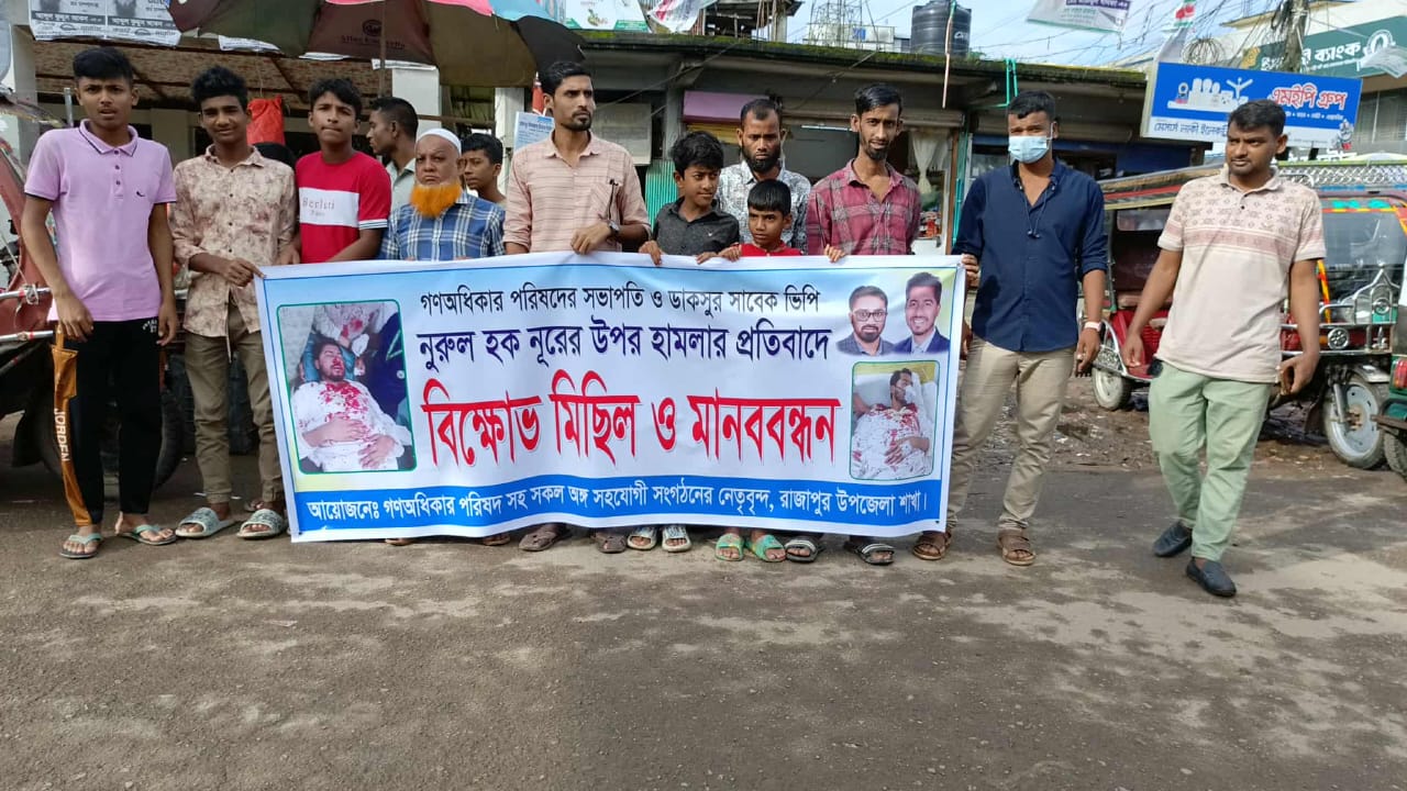 রাজাপুরে নুরের উপর হামলার প্রতিবাদে বিক্ষোভ