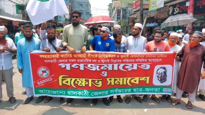 ঝালকাঠিতে আওয়ামীকে নিষিদ্ধ করার দাবিতে বিক্ষোভ