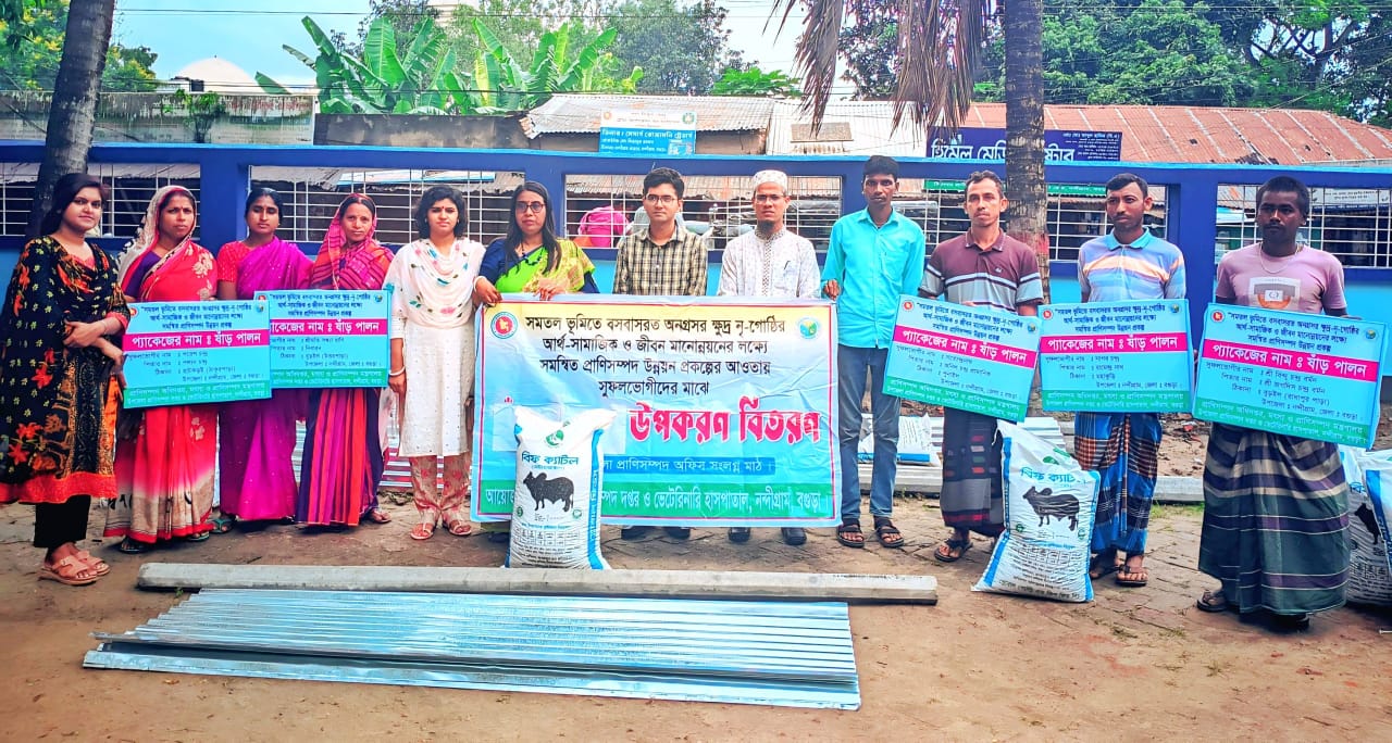 নন্দীগ্রামে ক্ষুদ্র নৃ-গোষ্ঠীদের মাঝে গরুর উপকরণ বিতরণ