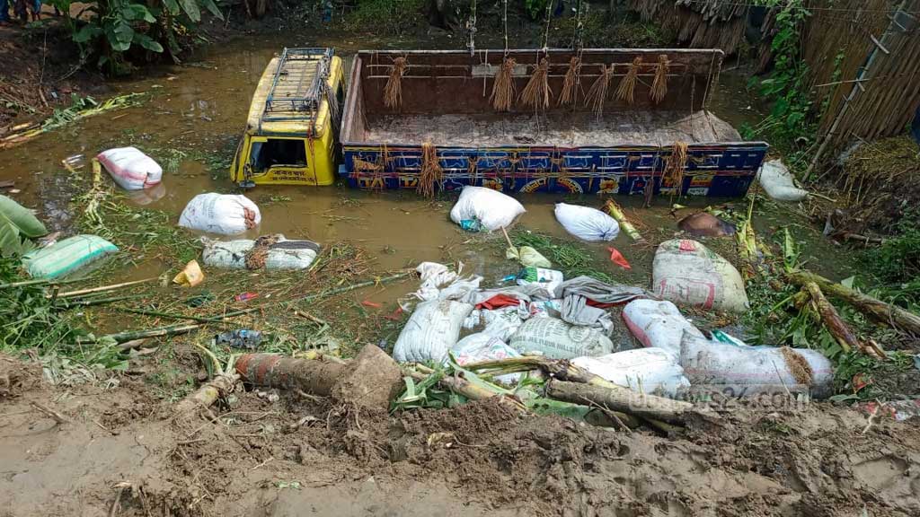 রাজবাড়ীতে গরুবাহী ট্রাক নিয়ন্ত্রণ হারিয়ে খাদে, ২ ব্যবসায়ী নিহত