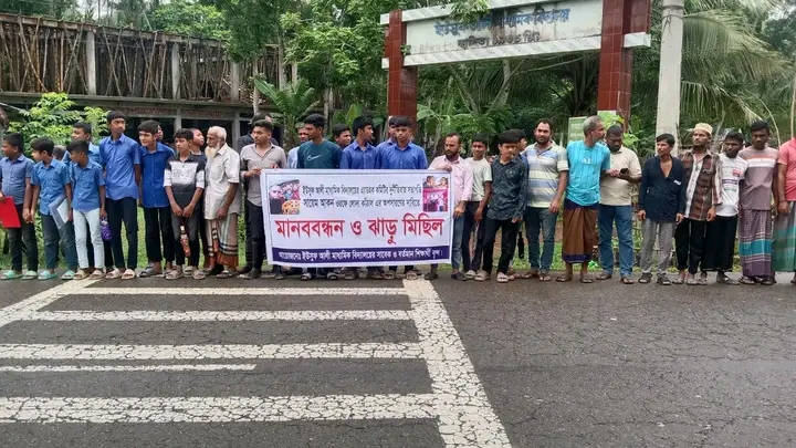 এডহক কমিটির সভাপতির অপসারণ চেয়ে শিক্ষার্থীদের মানববন্ধন